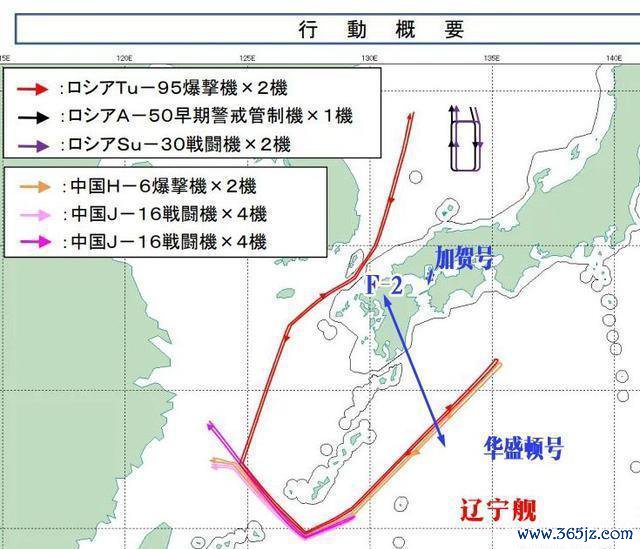 中方派出了2架轰-6K轰炸机,搭载可能挂载长剑-20或鹰击-21繁华音速巡航导弹,射程松驰疏淡1500公里。 俄方则派出了2架图-95MS战术轰炸机,8架歼-16战机和2架苏-30战机为其护航。 中俄长入轰炸机编队的航行蹊径相称隆重。 他们从宫古海峡开赴,飞到日本四国岛以南400公里的海域,距离大阪惟有不到500公里,距离东京也不外760公里。